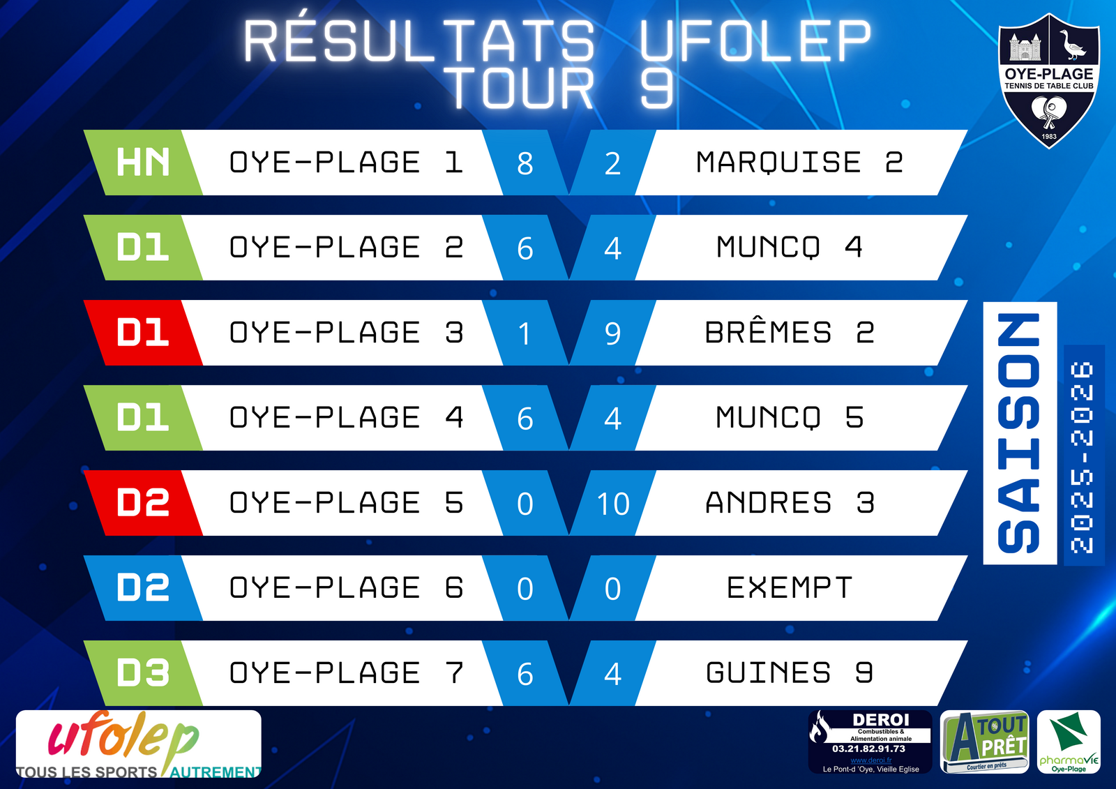 Encore une belle soirée de ping pour nos équipes d’Oye-Plage lors du tour 9 UFOLEP !